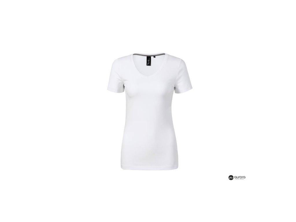 strečový materiál udržiavajúci stálosť tvaru, priliehavý strih s bočnými švami, prehĺbený výstrih v tvare V, úzky lem priekrčníka z rebrového úpletu 1:1 s 5 % elastanu, vnútorná časť priekrčníka začistená kontrastnou páskou, spevnenie ramenných švov páskou, krátke priliehavé rukávyDodatočné parametre