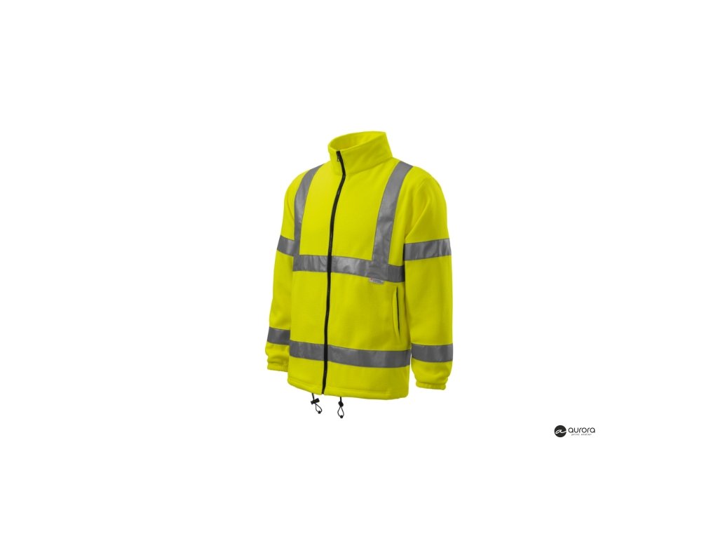 odev s vysokou viditeľnosťou, hrejivý fluorescenčný materiál, certifikované retroreflexné pruhy 3M, vnútorný priekrčník začistený páskou vo farbe povrchového materiálu, celozapínací kostený zips vo farbe 01, lištové vrecká s kosteným zipsom, dolný lem na stiahnutie elastickou šnúrkou, lemy rukávov stiahnuté pruženkou, antipilingová úprava z vonkajšej strany, certifikácia podľa noriem EN ISO 20471/A1 (trieda 3) a EN ISO 13688Dodatočné parametre