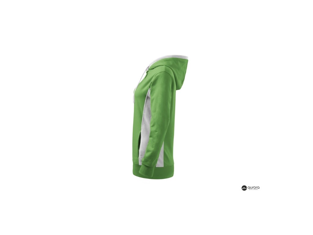 strečový rýchloschnúci materiál, strih tvarovaný bočnými dielmi, kapucňa s podšívkou, na stiahnutie šnúrkou, lištové vrecká v štýle klokanky, dolný lem, manžety a priekrčník z rebrového úpletu 1:1 s 5 % elastanu, kontrastné prvky (okrem farieb BB a WW), vnútorná strana nepočesanáDodatočné parametre